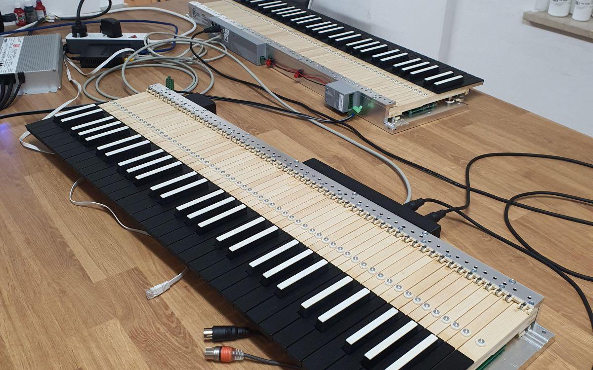 Un mécanisme mécanique est un système ingénieux : une touche doit parfois être reliée sur plusieurs mètres à un soupirail, sans que la sensation de jeu ne soit perdue. Un bon mécanisme est à la fois fluide et précis. Mais comment transférer cette sensation authentique à un orgue électronique ?